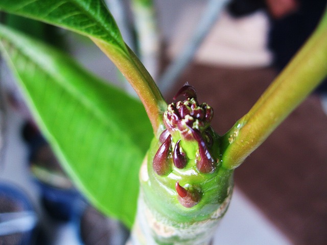 我が家のプルメリアの花芽が遂に姿を現しはじめました!