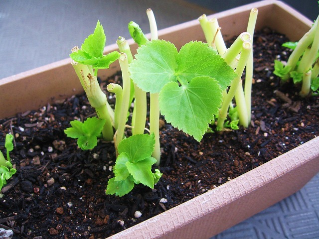 先日植えたばかりの三つ葉の根からも新芽がぞくぞくと顔を出してきている。