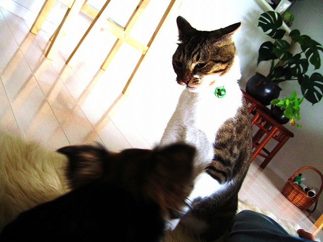 小粒 あんた、誰のお陰で家猫になれたと思ってんのよ!私のお陰でしょ!
