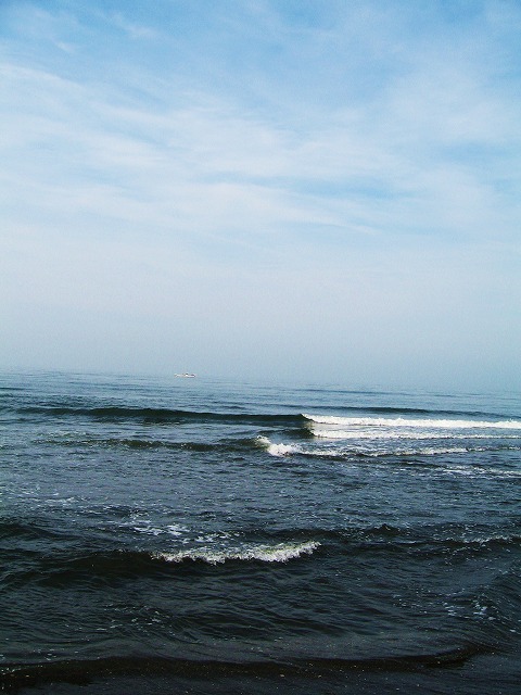 昨日の波も少し残り、久しぶりにエヤコンの除湿をかけているかのように爽やかな今朝の海......。