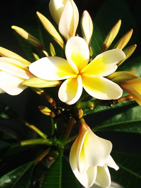 我が家のプルメリアも今日の太陽パワーで咲きました!